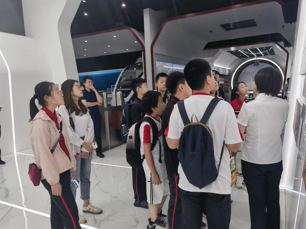 在讲解人员的带领下,师生们首先来到一层轨道交通展厅。一幅幅老照片、一张张地铁票卡、一份份文件,以及触摸屏的动态展示,让师生们系统直观地学习了北京轨道交通的发展历史和相关知识;真实的地铁列车车头、支持“刷掌”的闸机、市域列车模型、轨道洞体的断面模型、副中心综合交通枢纽剖面模型等一件件物品,大大激发了师生们对蕴藏其中的科学技术的兴趣。随后,师生们来到四层参观厅,映入眼帘的是使用面积近2400平方米、亚洲最大的轨道交通指挥调度大厅,透过玻璃幕墙,师生们被眼前壮观的景象所深深吸引。通过讲解人员细致的讲解,师生们了解了北京轨道交通调度指挥运营系统,纷纷感叹轨道交通运营的“神奇”“高科技”,并争先恐后向讲解人员提问,了解职业特点,了解AI在行业的应用,主动把轨道交通调度指挥职业与自身初高中所需要学习的知识体系结合起来。
